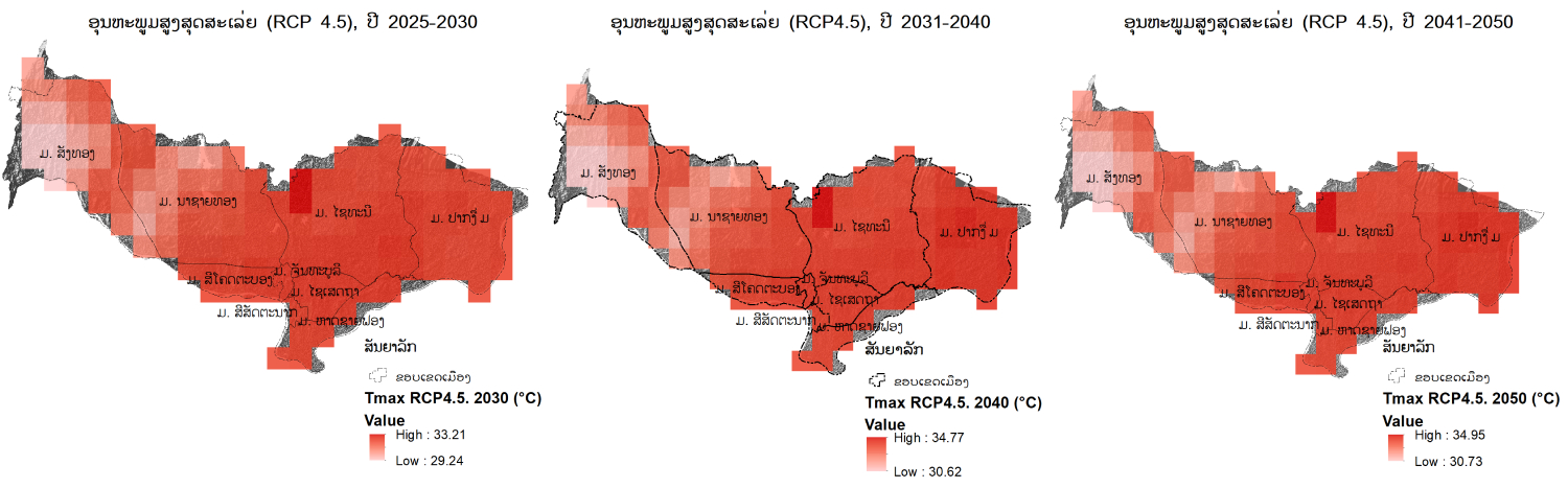 ຄາດຄະເນ ອຸນຫະພູມສູງສຸດໂດຍສະເລ່ຍ (RCP 4.5)
