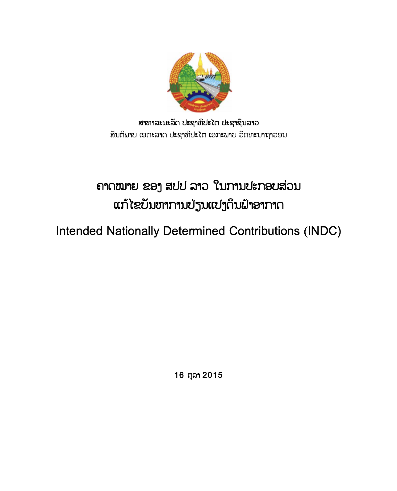 INDC_ຄາດໝາຍຂອງສ ປປ ລາວ ໃນການປະກອບສ່ວນແກ້ໄຂບັນຫາການປ່ຽນແປງດີນຟ້າອາກາດ_2015_Lao_Eng